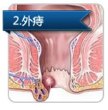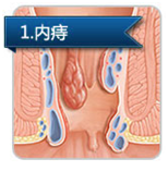 内痔: 位于齿线以上。平时隐蔽肛门内,排便时轻度内痔,便血;严重内痔患者,脱出于肛门外,便血、脱出为主要症状。